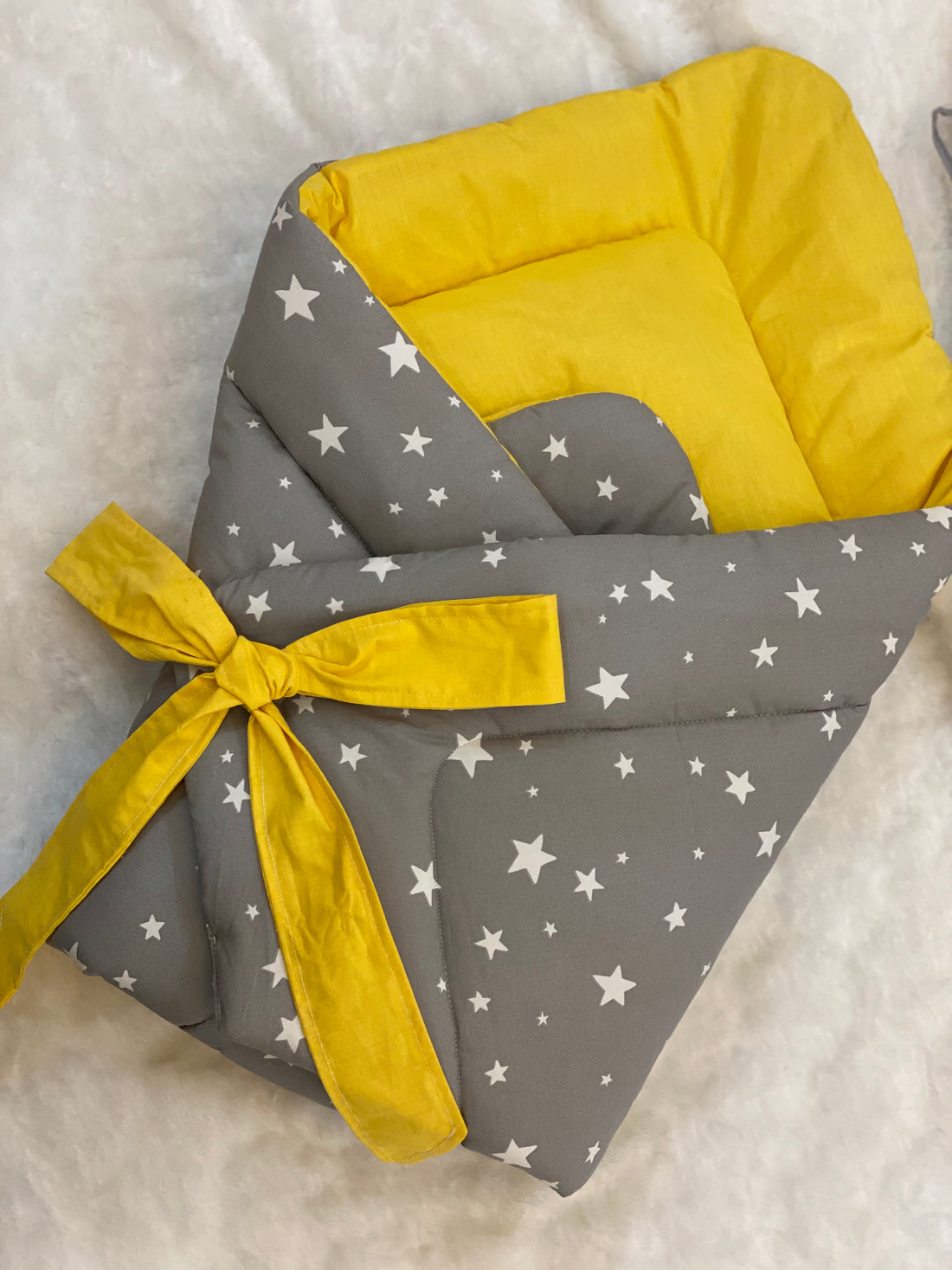 9 Piece Cot BeddingSet includes:1 Baby Pillow (with filling)2 Neck Rolls (with filling)1 Quilted Comforter...
