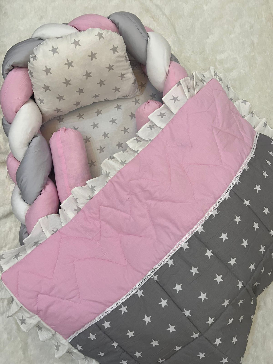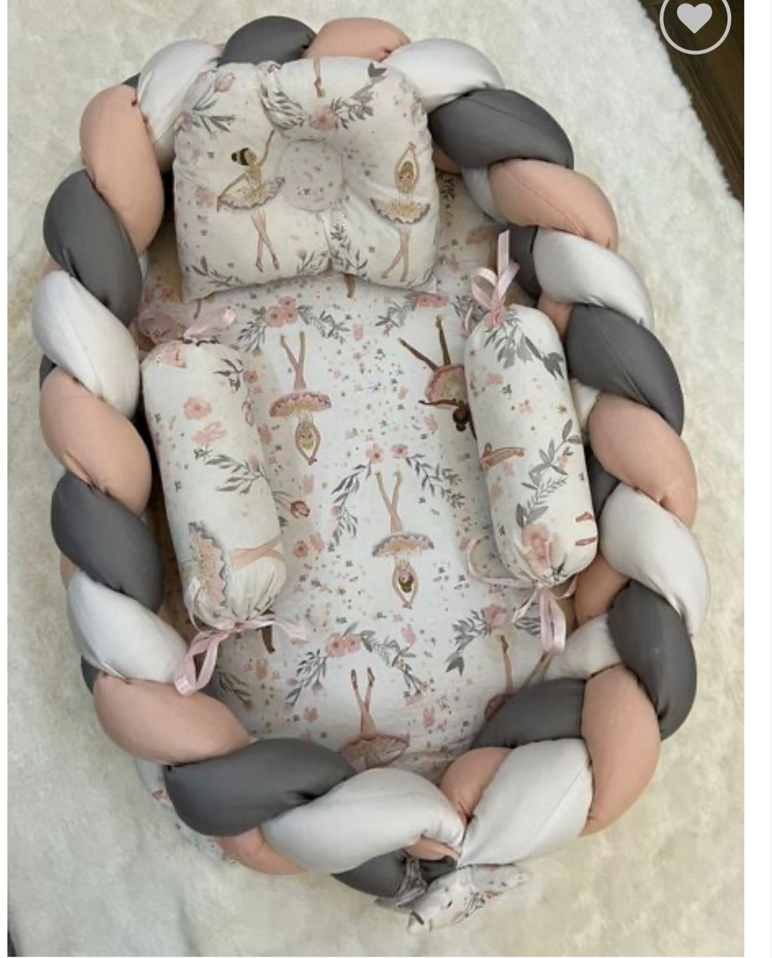Fabric: Cotton Baby Nest comes with: 1 Nest with Detachable Braided Bumper (with Filling) 2...