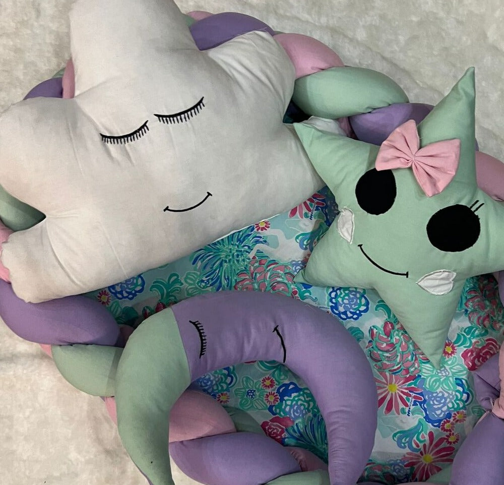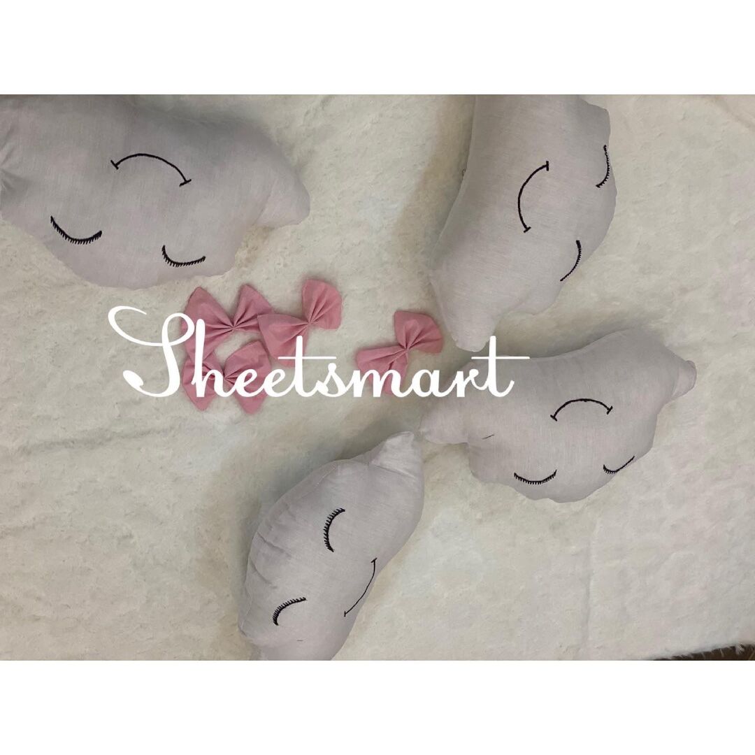 4 Clouds With Bows And Filled With Ball Fiber. Material: Cotton Name Can Be Customise...