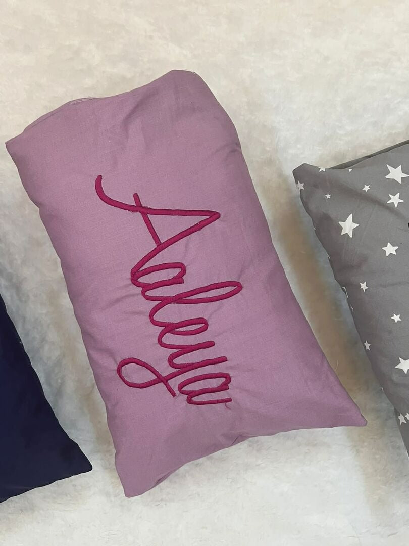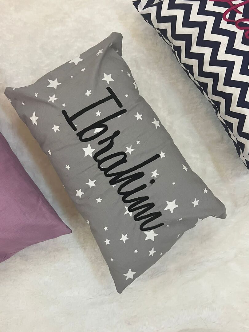 2 Cushions Filled With Ball Fiber. Material: Cotton Name Can Be Customise With 50% Advance...