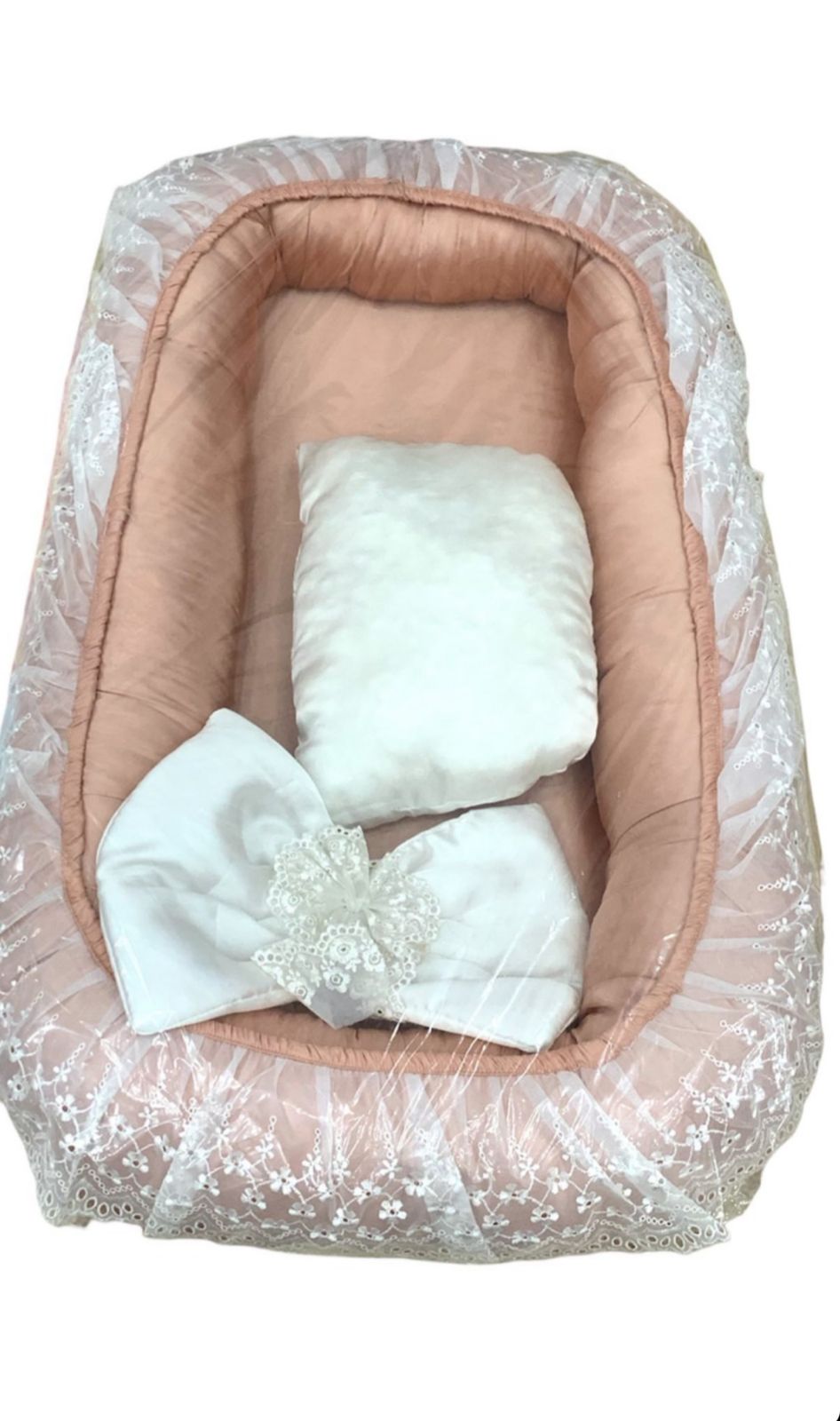 Snuggle Bed comes with: 1 Nest with Detachable Braided Bumper (with Filling) 2 Neck Rolls...