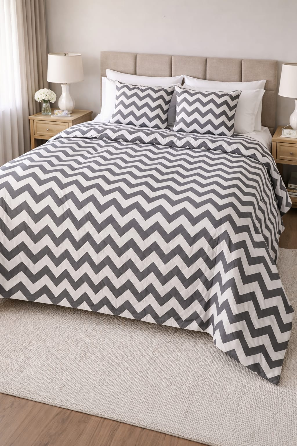 Grey Chevron King Size Duvet Cover Set - Without Filling