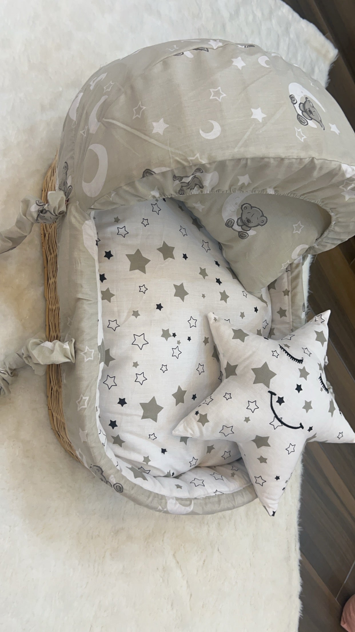 Teddy Cane Moses Basket